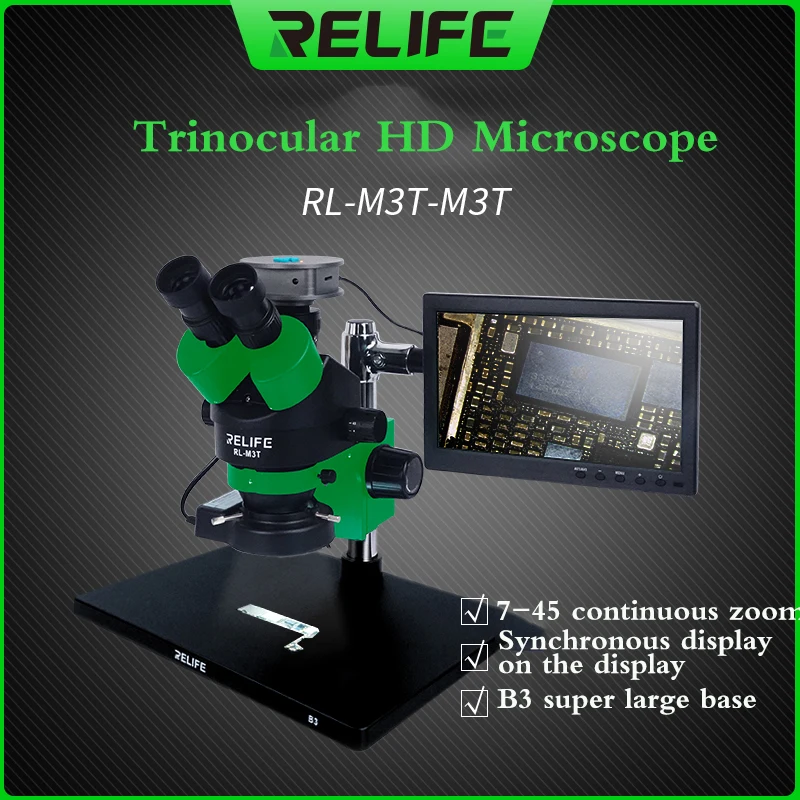 - RELIFE RL-M3T Professional Electronic Microscope, Mobile Phone Repair Trinocular Microscope for Soldering IC Pcb Repairment