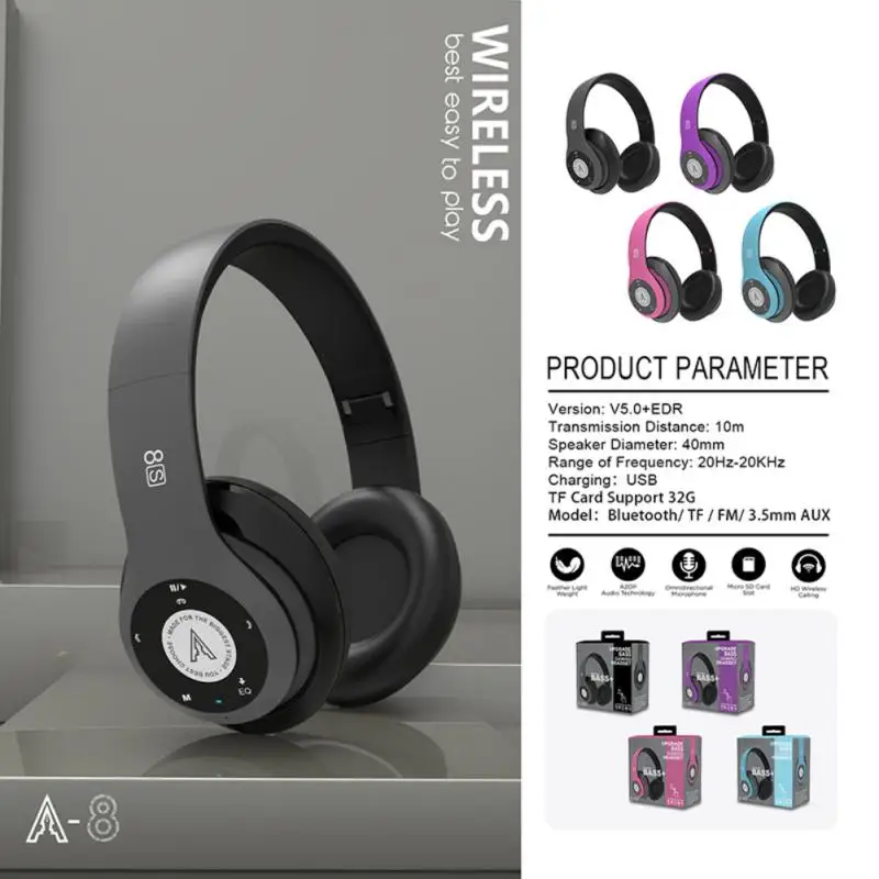 1. A 8S Wireless Headphones Strong Bass Bluetooth Compatible 5.0 Headset Noise Cancelling Earphones Supoort TF Card Headset 012 Product Id: 1005004185976750 |