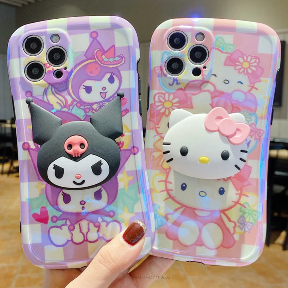 - Sanrio Hello Kitty Kuromi Phone Case For iPhone 13 12 11 Pro Max XS XR X Xsmax 7 8 Plus Cover Women Girls Y2K With Holder Luxury