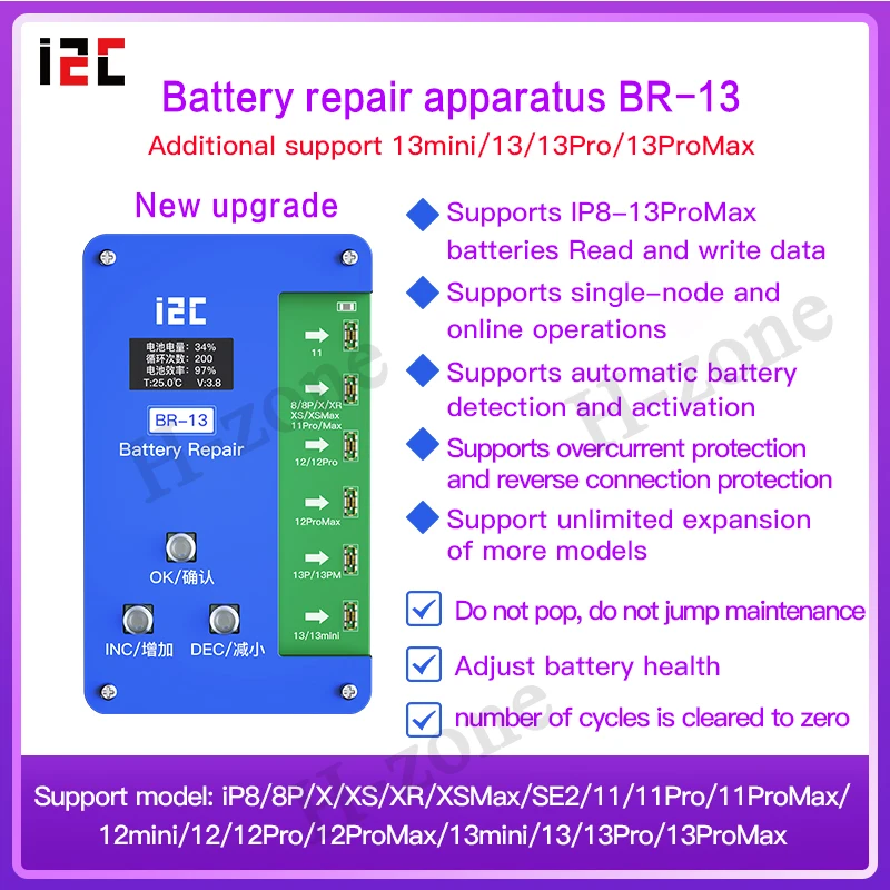 1. I2C BR 13 Battery Repair Instrument For IPhone 8 X 11 12 13PRO MAX External Built in PCB Battery Encryption Cell Correction Tool Product Id: 1005003257804070 |