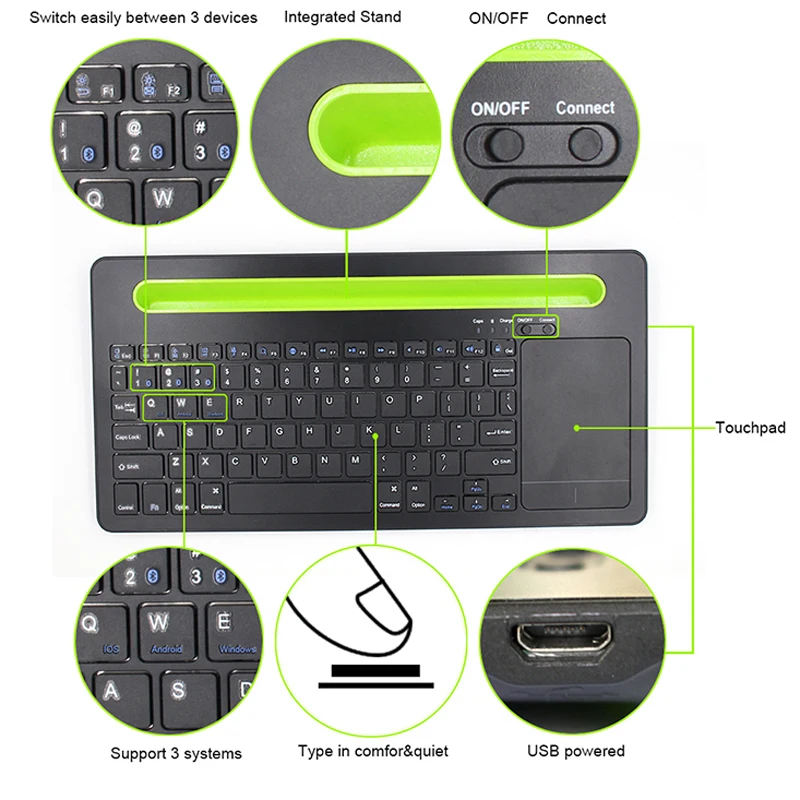- BK230TF universal multi device double bluetooth dual mold wireless keyboard trackpad mouse keyboards with phone case holder