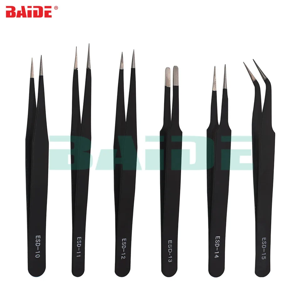 12. 6 in 1 Black ESD Tweezers Anti static Stainless Steel Nipper with ESD 10 11 12 13 14 15 for Phone Precision Repair Tools Kit Product Id: 4000042221303 |