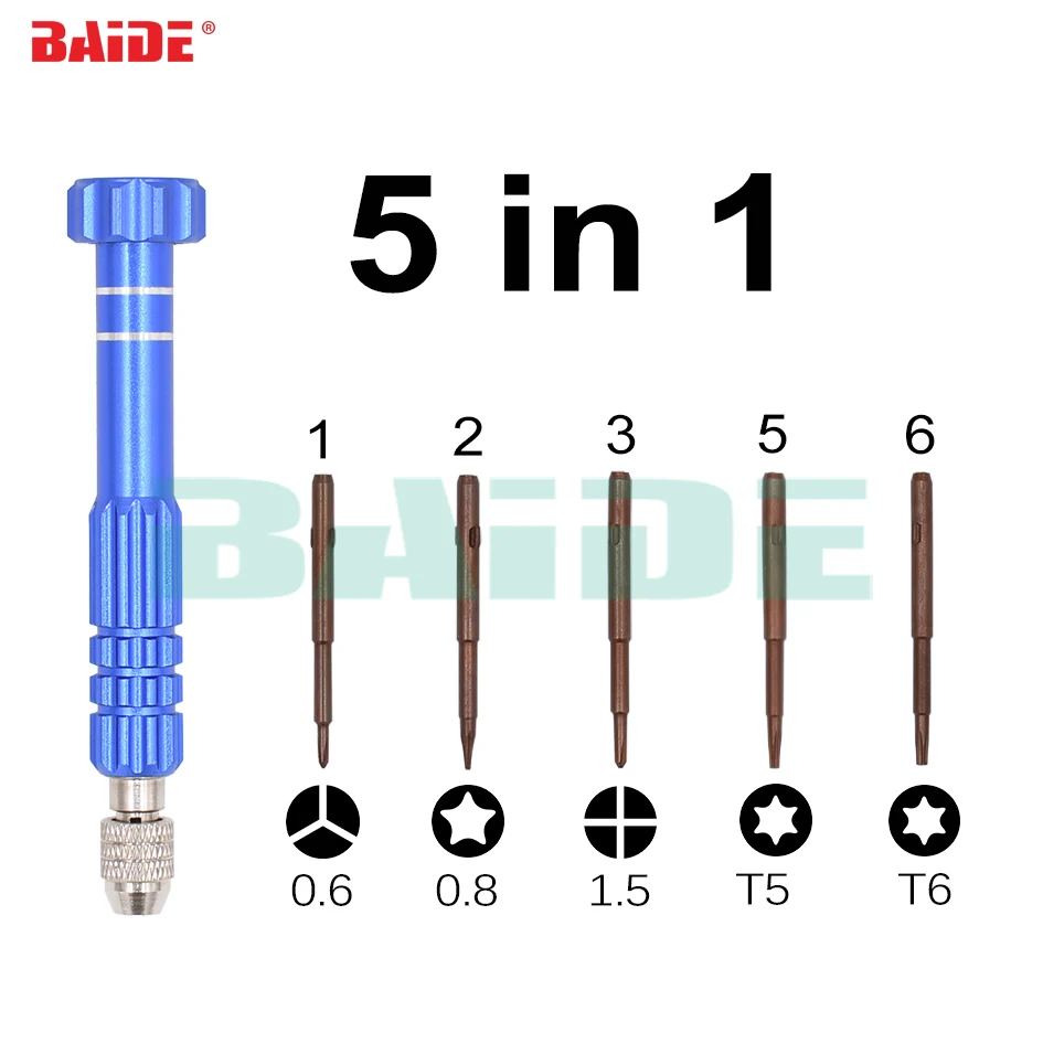 - 5 in 1 Screwdriver S2 Bit Screw Driver With 0.6Y 0.8 Pentalobe 1.5 Phillips T5 T6 Repair Tool Kit for iPhone 7 8 Huawei