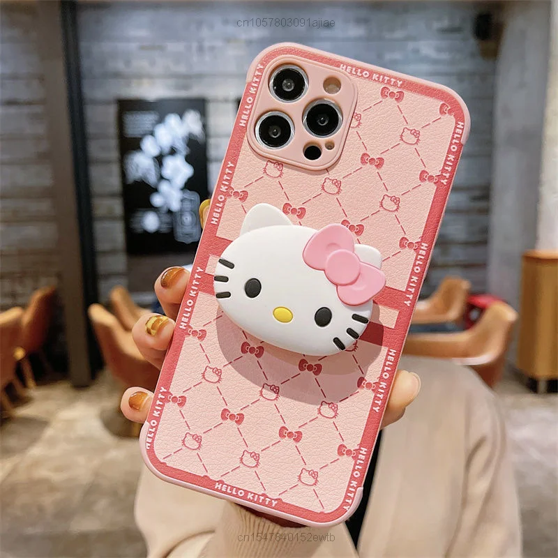- Sanrio Hello Kitty Phone Case With Holder For iPhone 12 13 11 Pro Max Cartoon XS XR X Female 7 8 Plus Women Girl Y2k Kawaii Case