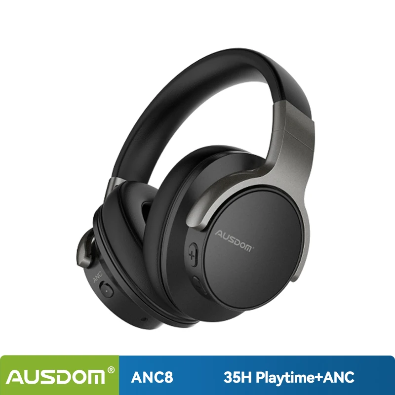 - AUSDOM ANC8 Active Noise Cancelling Wireless Headphones Bluetooth Headset with Super HiFi Deep Bass 35H Playtime for Travel Work