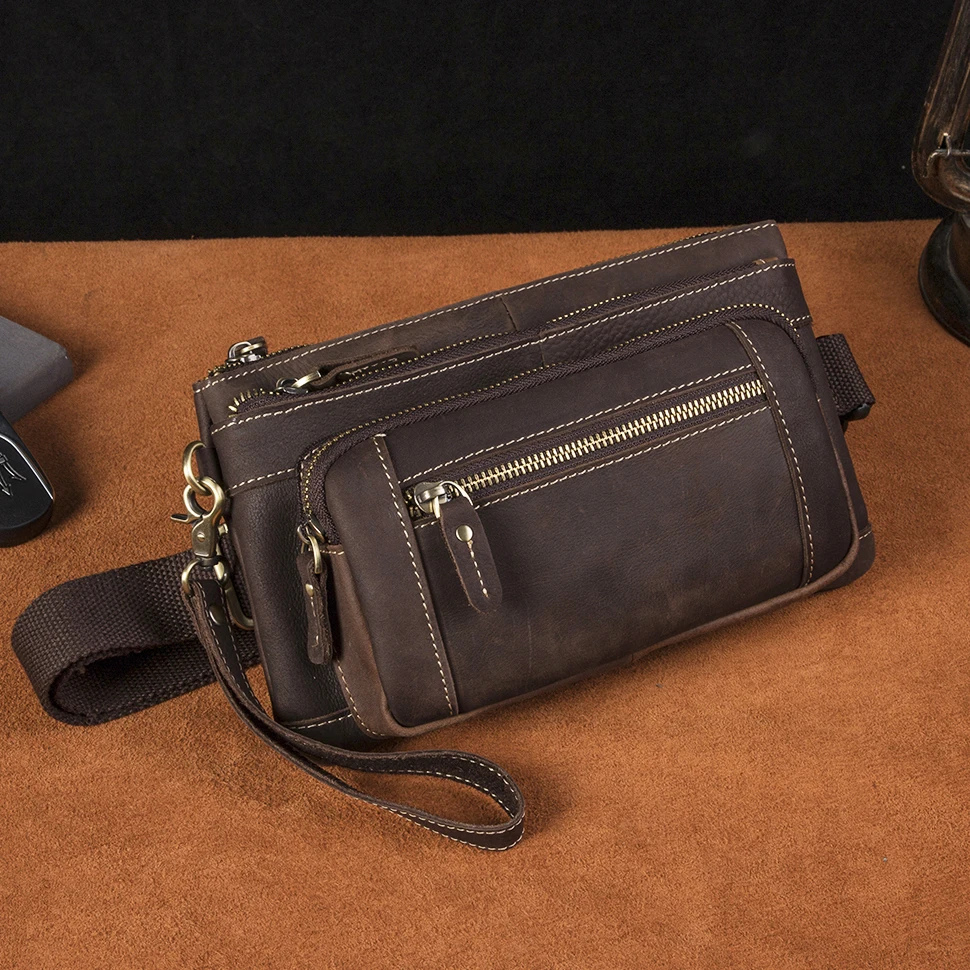 - Trend Crazy Horse Leather Men Casual Vintage Travel Fanny Waist Belt Bag Chest Pack Design Phone Cigarette Case Pouch Male 9801