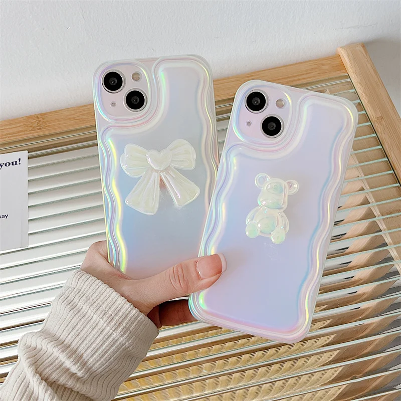 - Fashion Unique Curve Shape 3D Bow Bear Soft TPU Phone Case For IPhone 13 12 Pro Max XR XS 11 Discoloration Shockproof Back Cover