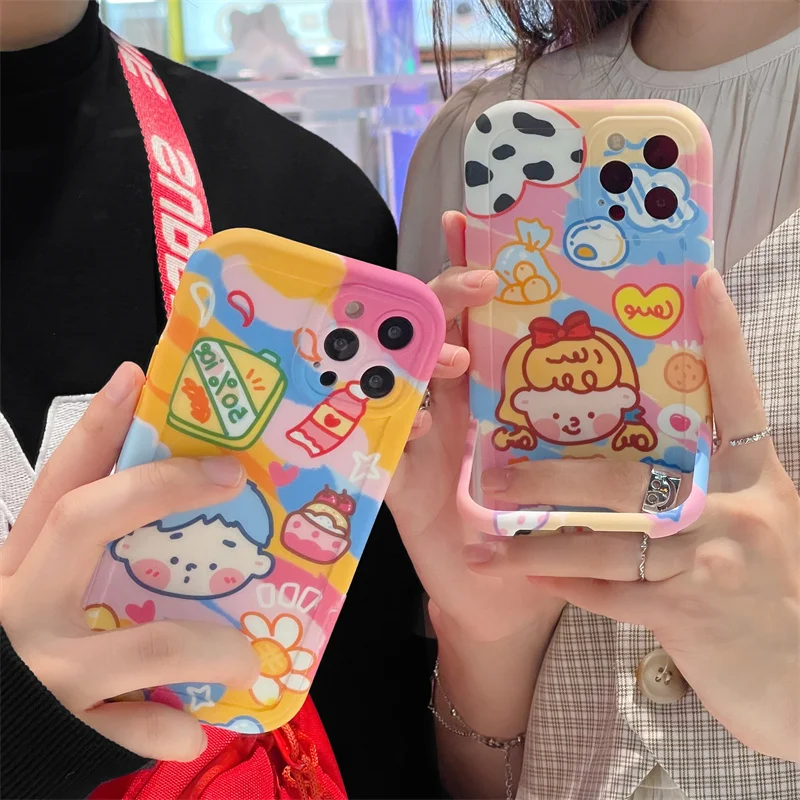 - Cartoon Unique Graffiti Funny Couple Pattern Soft Phone Case For IPhone 12 11 13 Pro Max Xs XR Hidden Frame Bracket Cover Capa