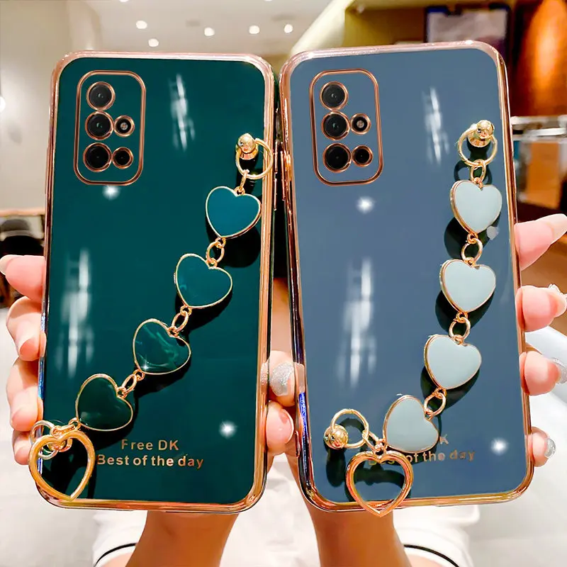 - Korea 3D Love Heart Metal Bracelet Wrist Chain TPU Phone Case for Samsung A32 52 72 12 51 71 30S 50 70 11 02 S20 Plus Note 10 20