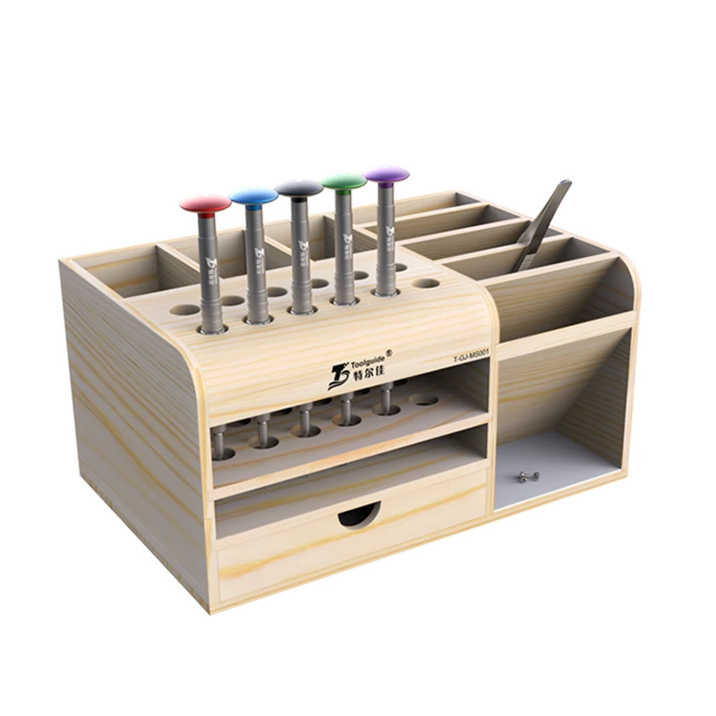 - Multi-Function Wooden Storage Box Screwdriver Tweezers Holder Mobile Phone Repair Tools Desktop Storage