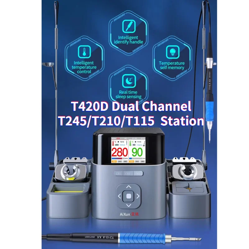 - AIXUN T420D Soldering Station VS. JBC C115 C210 Double Station Welding Rework Station For Phone PCB SMD IC Repair Solder Tools
