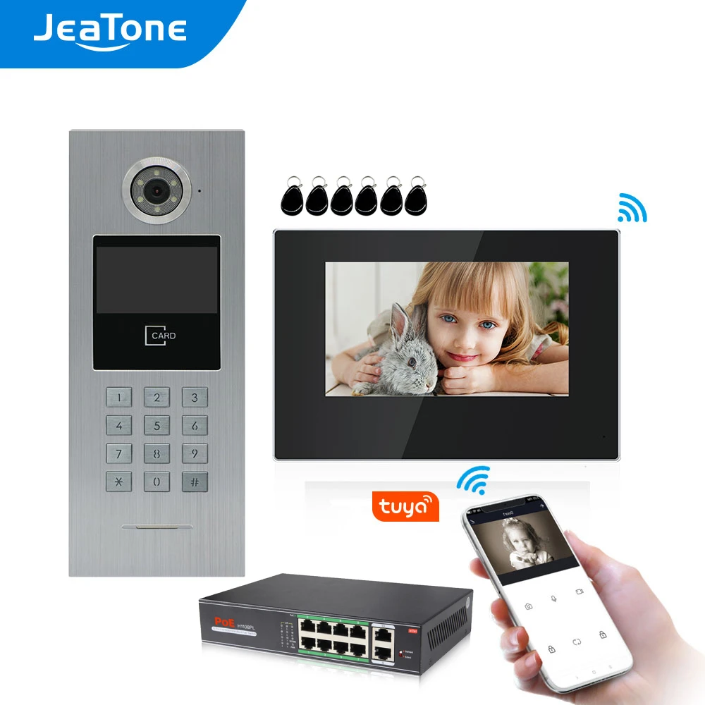 - JeaTone WiFi IP Video Door Phone 1 to 9 Units Multi Apartment Intercom Access Control System with Tuya/Password/RFIC Card Unlock